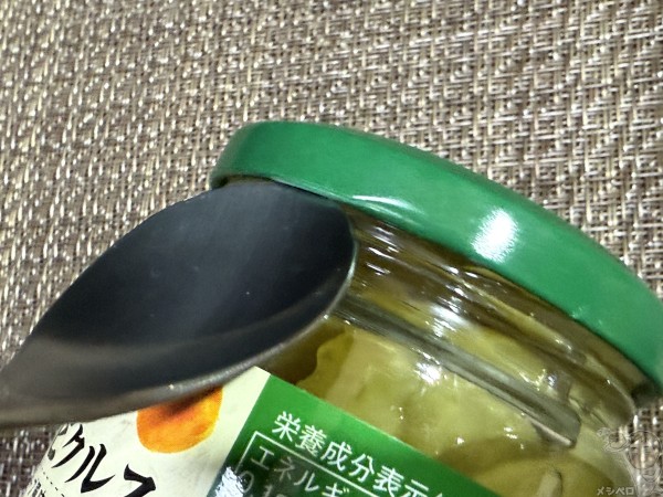 まずスプーンを蓋と瓶の間にひっかける。