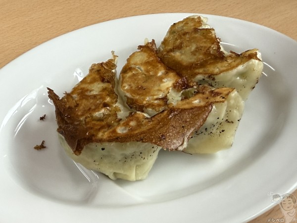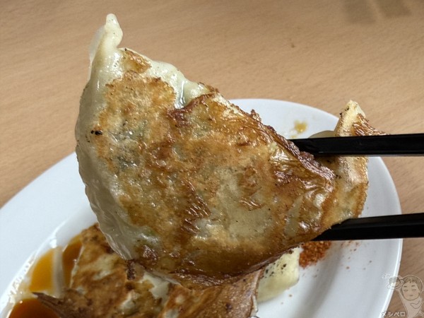ぷっくりと見るからに具だくさんな、佐野ラーメンならではの餃子。