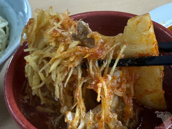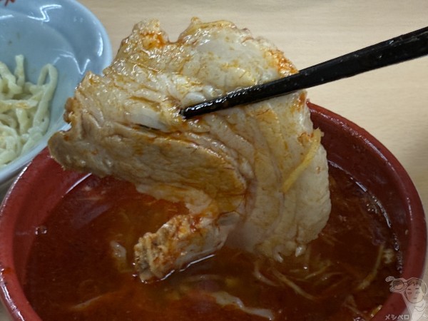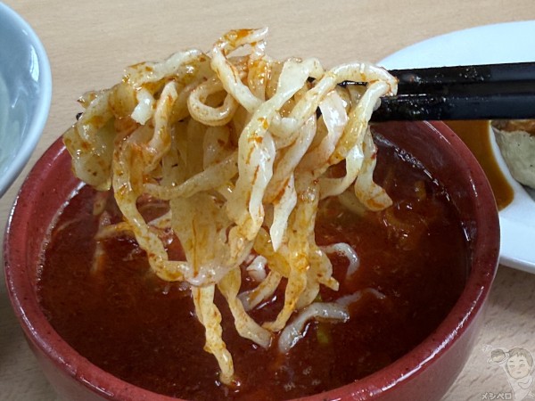 真っ赤な油が浮かぶ、見るからに攻撃力高そうなつけスープが衝撃的。