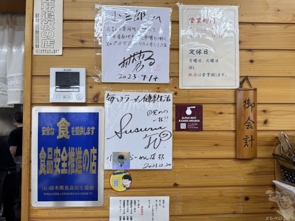 針生姜をたっぷりトッピングした『生姜らーめん』が名物で、他にも佐野ラーメンの麺を使用したつけめん、手作りぎょうざなども味わえる。