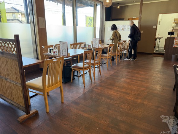 窓際には2人掛けのテーブル席1卓、4人掛けが3卓。