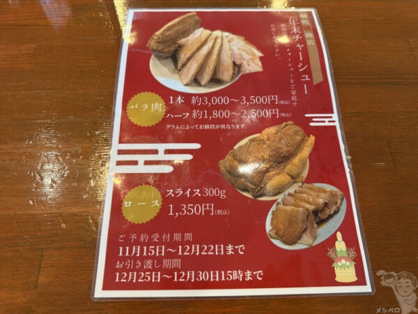 バラロールはどうしても大量整形する都合で冷凍保存の工程が発生し肉の質に影響が出てしまうので、そのまま使用できるブロックチャーシューに変更された。