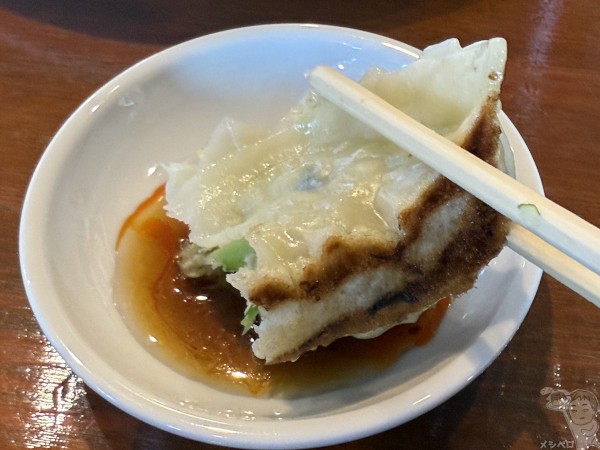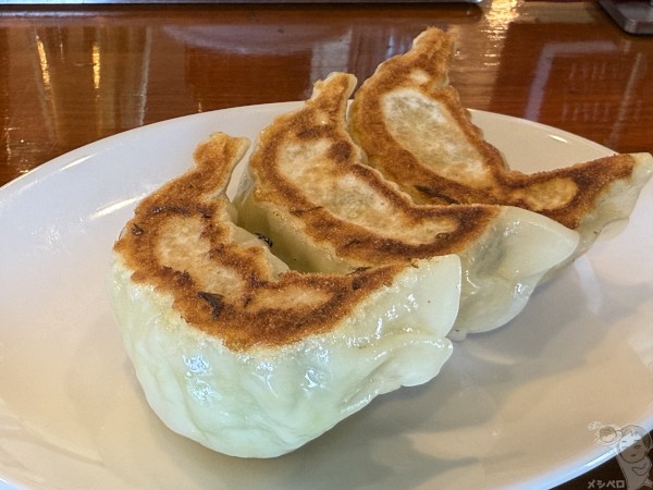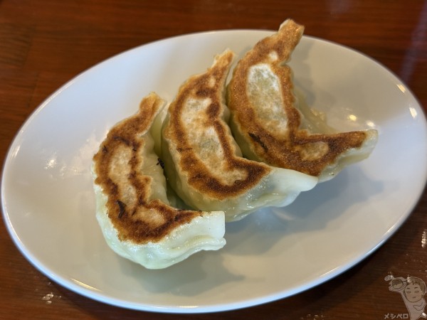 名物のひとつ手づくり餃子(3個)も食べてみた。