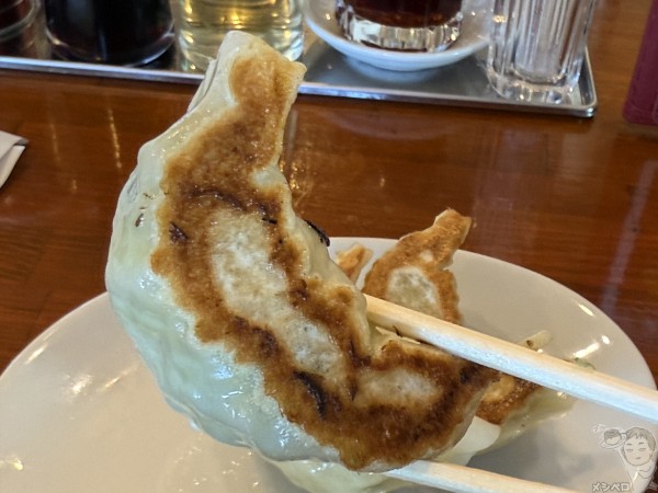名物のひとつ手づくり餃子(3個)も食べてみた。