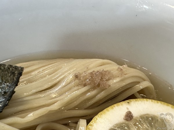 昆布水の出汁の旨みが際立ち、麺の旨みもより引き立つ。