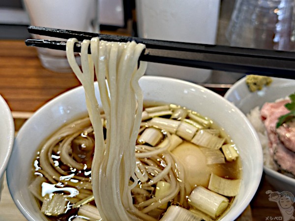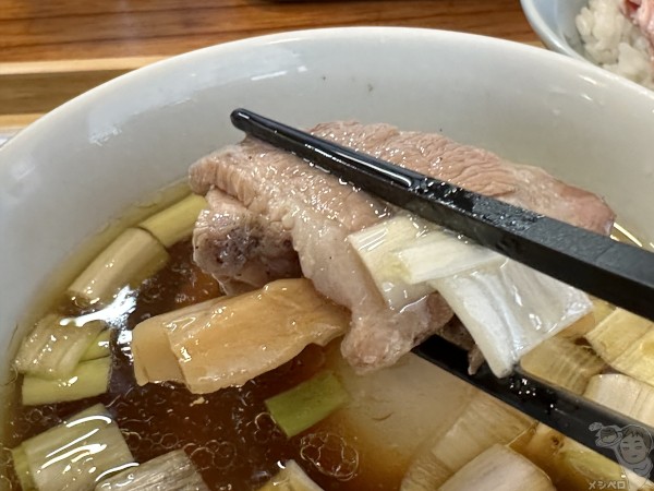 鶏のクセのない旨みと甘み、ネギの香ばしさや吊るし焼きチャーシューから溶け出す香りや旨みが絶妙なアクセントにきいている。