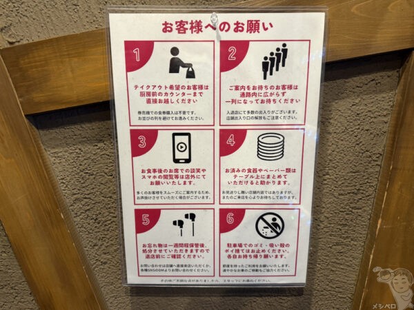 ・テイクアウトの場合は食券購入したら店内左奥(10号室付近)の厨房前カウンターへ