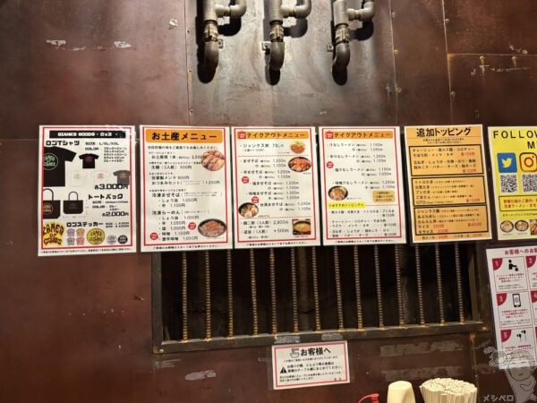 ラーメン、まぜそばだけでなく、つけ麺、汁なしラーメン、台湾まぜそばに激辛ラーメンなど豊富なメニューが揃う。