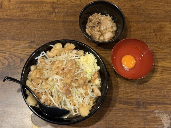ラーメン+ニンニクマシマシ+アブラマシ+豚カス脂+生玉子