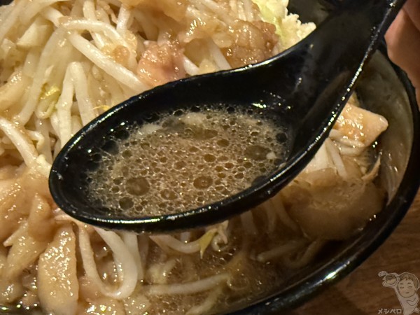 ここまでくると擬似的にスープが微乳化したような白濁した状態になり、ジャンクで攻撃力高めな味わいに変化する。