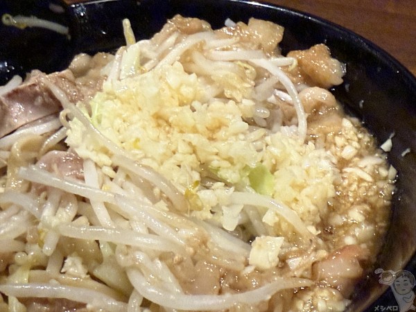 今回チョイスしたのは、ラーメンに無料トッピングでニンニクマシマシ、ヤサイ普通、アブラマシ、カラメなし。