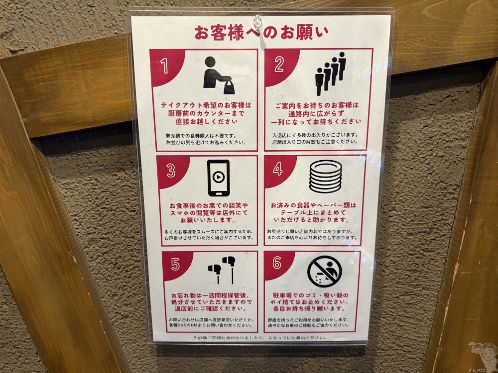 ・テイクアウトの場合は食券購入したら店内左奥(10号室付近)の厨房前カウンターへ