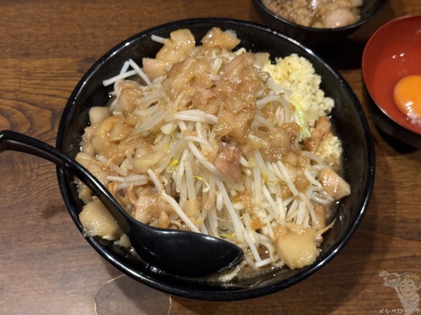 ラーメン+ニンニクマシマシ+アブラマシ+豚カス脂+生玉子