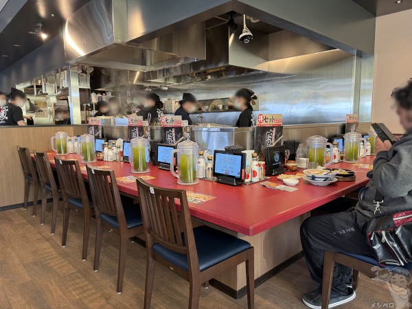 おひとり様席のカウンターに案内されるも、先客1名のみとおひとり様率は低め。