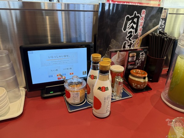 卓上調味料は、揚げにんにく・餃子だれ・酢・ラーメンコショー・どろだれラー油。