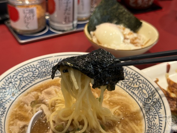 焼海苔合わせると海苔の磯感心地よく、旨味の相乗効果でより一層スープがコク深い味わいに。