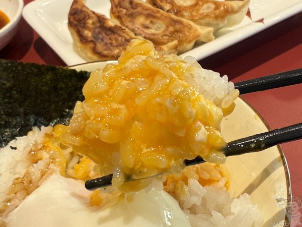 濃厚とろりとした黄身のコクと甘辛なタレがよく合う。