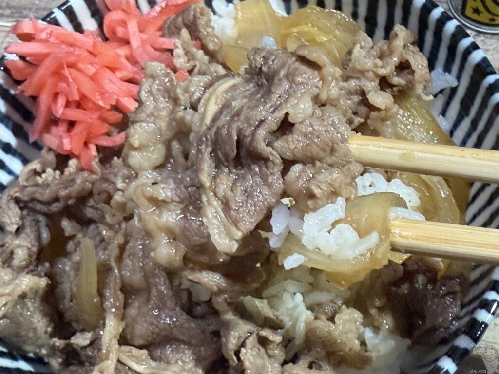 100%吉野家といっても過言ではないこの味、この口当たり、吉野家のカウンター席で食べてる姿が脳内再生されたほど。