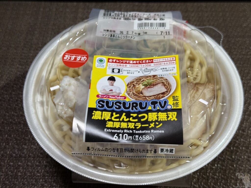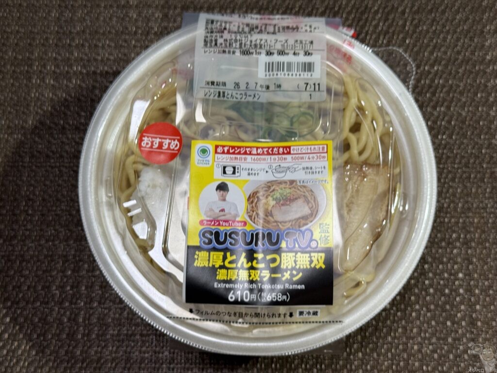 ファミリマートでは、2026年2月3日(火)よりSUSURU TV.監修の濃厚とんこつ豚無双濃厚無双ラーメンを再発売した。
