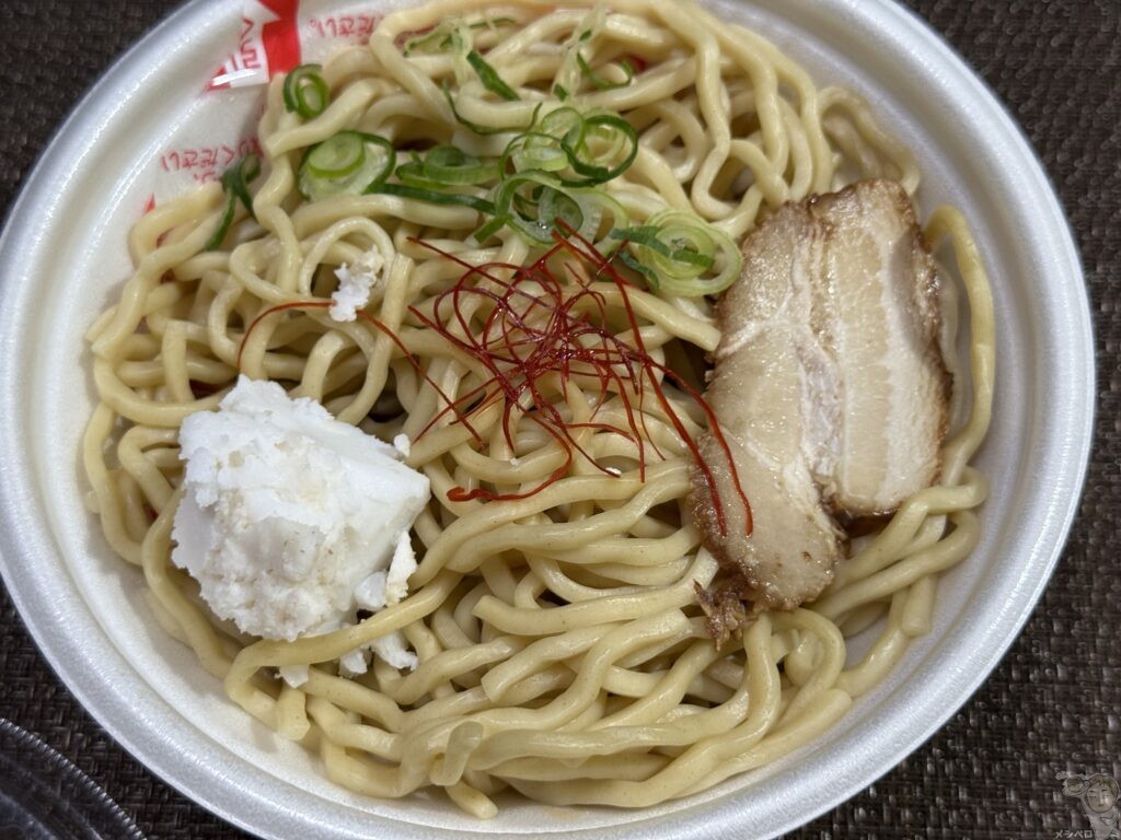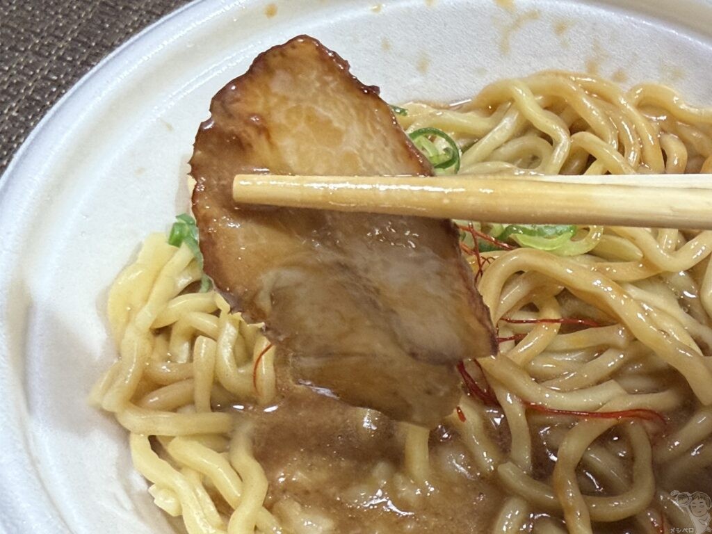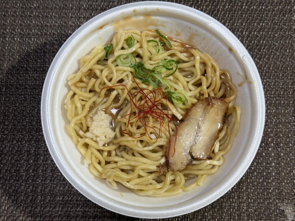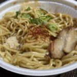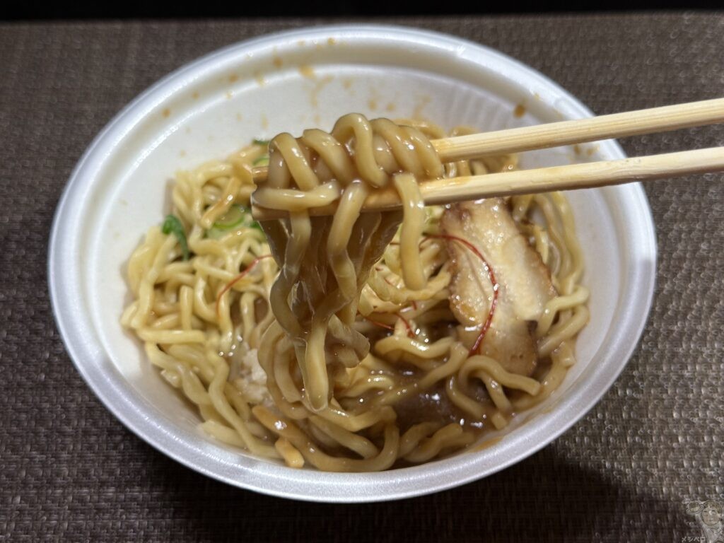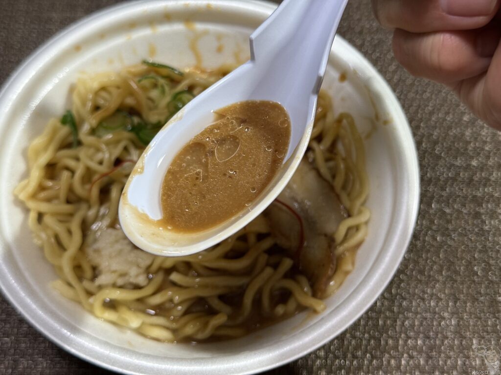 本物よりも尖った感はなくマイルド(一般的にはマイルドではない)で、それがコンビニ麺らしさ感じる味わいとちょうどいい。