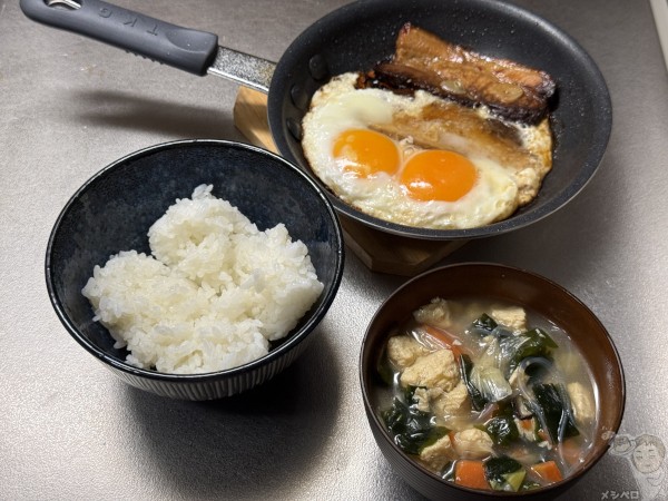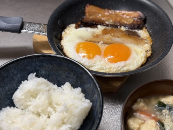 本当はチャーシュー目玉焼き丼にしたかったが、冷凍していたご飯が全然足りなかったのでこのまま。