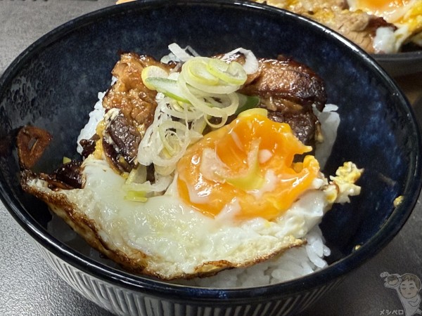 ご飯の上にのせ、ネギを添えたらチャーシュー目玉焼き丼の完成だ。