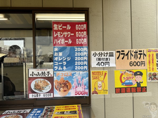 各種ドリンク、アルコール、一品香謹製の小山餃子も販売。