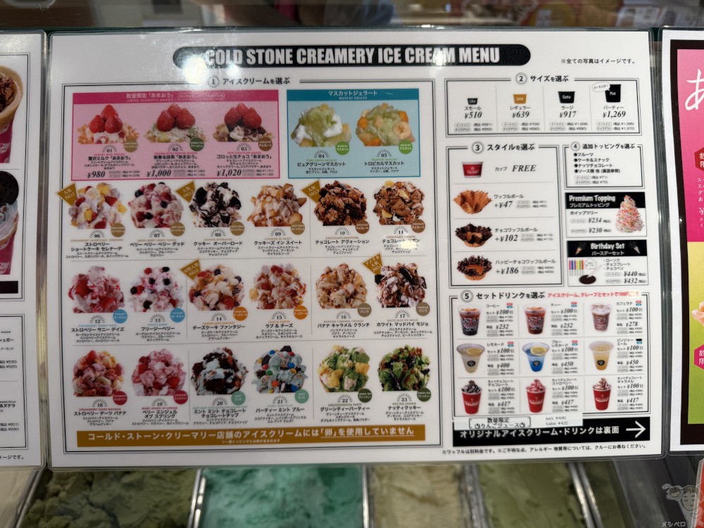 コールドストーン 佐野プレミアム・アウトレット店のメニュー