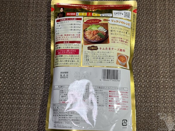 今回はそんな至高の鍋スープを品切れ前に奇跡的に買い置きしていたので、さっそく食べてみようじゃないか。