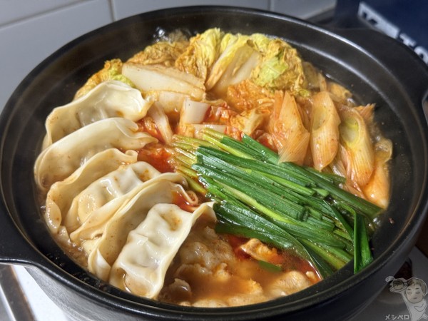 これが完成した至高のキムチ鍋バズアレンジバージョン。