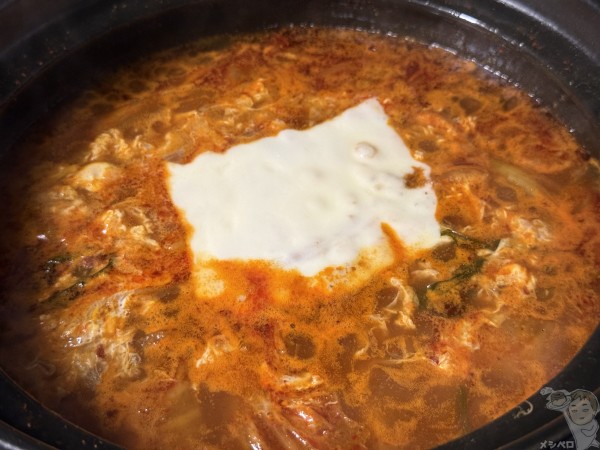 本来は追加のキムチは一緒に煮込むが、ノーマルの味もあじわいたいので後乗せで食べている途中に煮込むことにした。