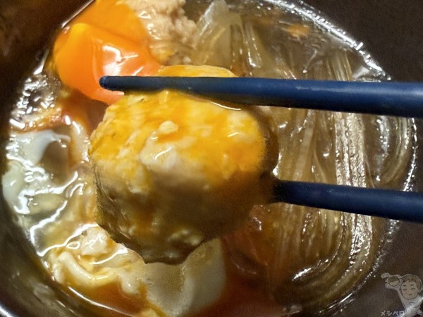 半熟に煮込まれた卵を崩して具材に絡めて食べると最高。