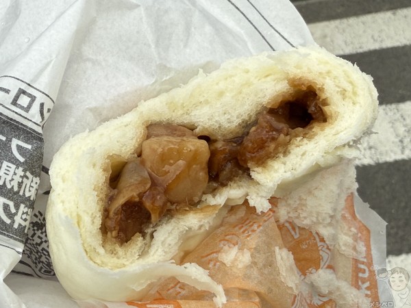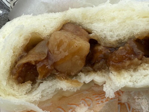 割ってみると中には大ぶりな角煮がごろっと入っている。