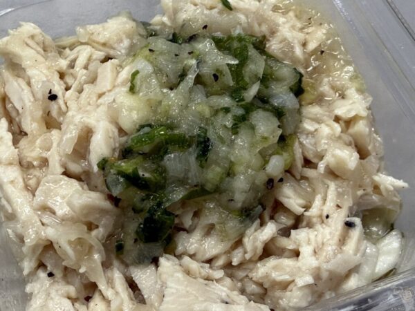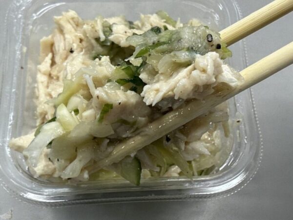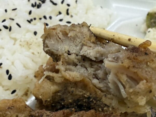 チキンは柔らかくしっとりで、ねぎ塩レモンだれのネギやごま油の香ばしさと黒胡椒のスパイシーな風味があとを引く。