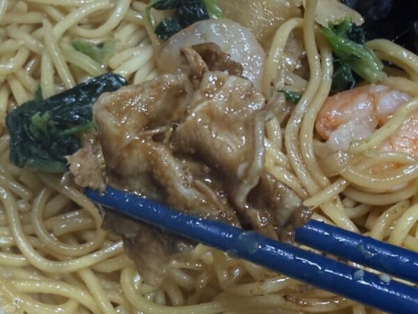 豚肉炒めは若干野生味が気になるので、麺など他の具材と一緒に食べるのがベスト。