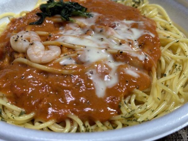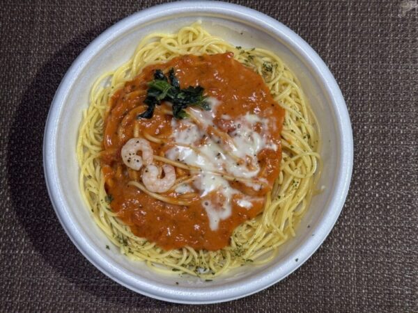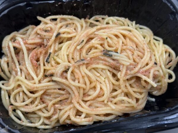 初登場の冷凍食品メニューの明太子パスタ。