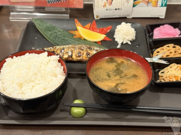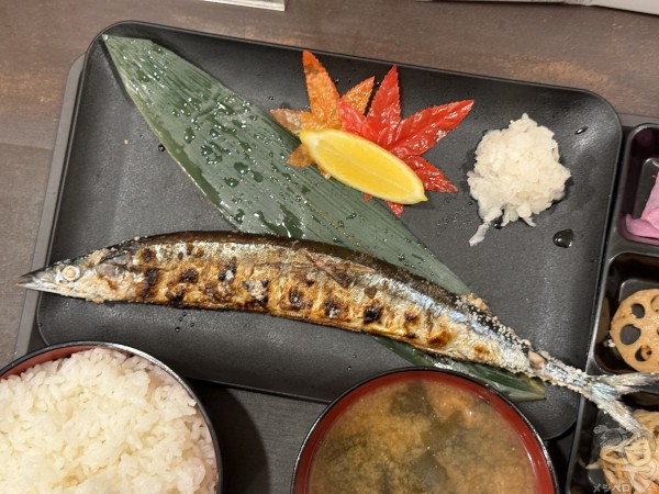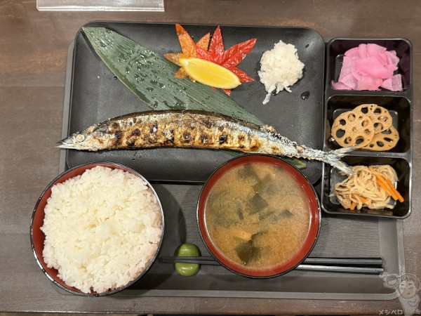 メインのサンマ1尾にレモン・大根おろしが添えられている。