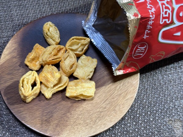 しょうゆパウダーとチキンブイヨンパウダーの風味で旨み引き立ち、噛むほどに旨み広がりほんのり甘い余韻にヤミツキ感も増す。