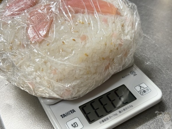 1kgは食べられないという人は、1/6ほどにサイズダウンした一般的なおにぎりで挑戦してみてほしい。