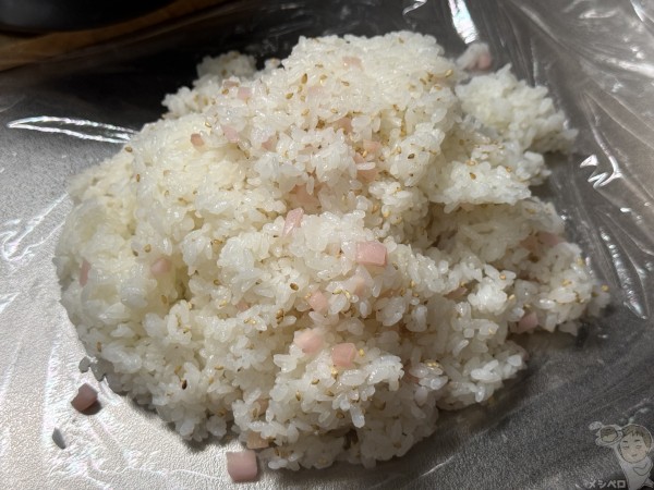 ・数回に分けながら混ぜた方が楽 - ラップで若干平らな円形に握る